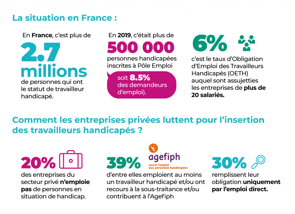 Chaque entreprise d’au moins 20 salariés a l’obligation d’employer des travailleurs handicapés (OETH) à hauteur de 6 % de son effectif. Elle doit également effectuer chaque année une déclaration relative à l’obligation d’emploi des travailleurs handicapés (DOETH). Lorsqu’elle ne remplit pas cette obligation, l’entreprise doit verser une contribution annuelle.